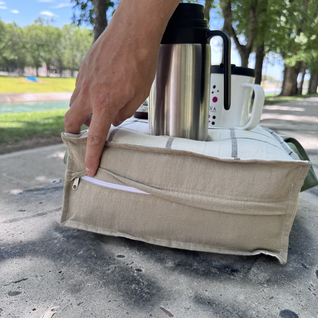 ✦ Protección extra: su base impermeable brinda seguridad frente a derrames, mientras que los compartimentos impermeables mantienen el termo, el mate y demás accesorios cuidados en todo momento.