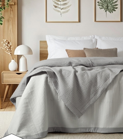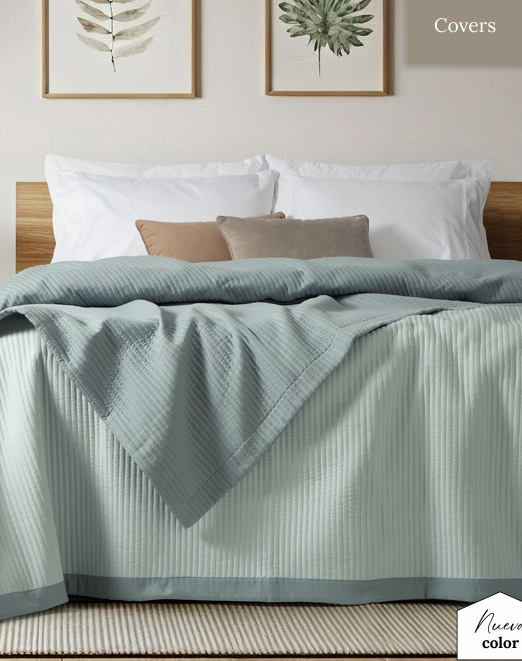 Cover quilt bicolor con un sutil matelaseado rayado y marco a tono.