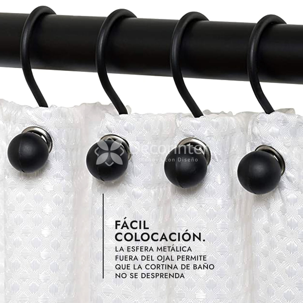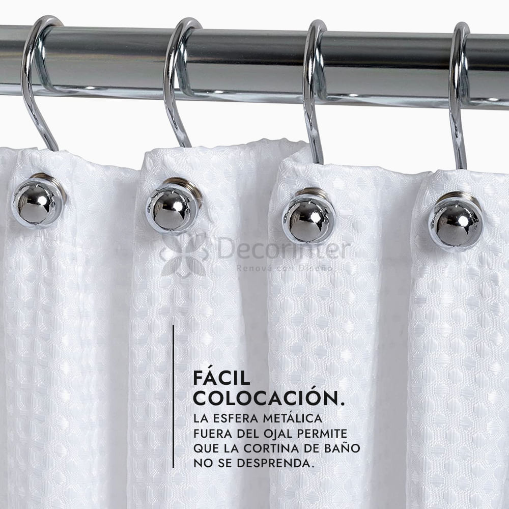 Ganchos para cortina de baño, ideales para completar el armado del baño con estilo y funcionalidad.